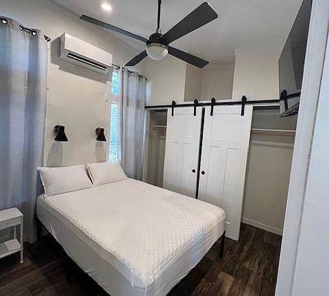 Charming Tiny Home for Lease Windmill RV Ranch, Bertram TX Enjoy peaceful Hill Country living in this cozy tiny home located in the gated community of Windmill RV Ranch. Rent includes high-speed internet, water, and sewer tenant only pays for electric usage. Just steps away from the community clubhouse, you'll have access to a laundry room, community room, and pool table, along with regularly planned resident activities that make this neighborhood feel like home. Windmill RV Ranch offers beautifully maintained walking trails, mature trees, and a fenced dog park, providing the perfect balance of comfort and outdoor enjoyment. Conveniently located near Highway 29, you'll have easy access to Liberty Hill, Bertram, and the surrounding Hill Country ideal for those seeking a quiet retreat with a quick commute. This is an affordable, well-kept, and community-oriented living option perfect for anyone looking to simplify and enjoy the best of small-space living in a scenic setting.