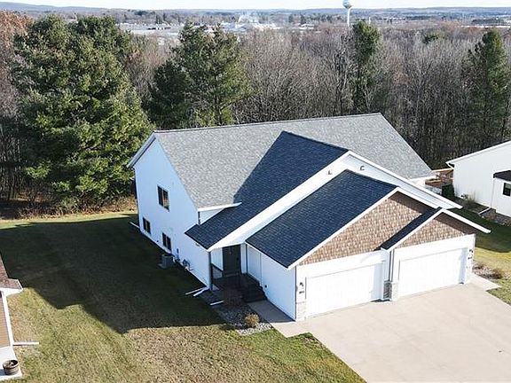 Welcome home to this beautifully maintained twinhome, tucked in a peaceful neighborhood in the City of Rice Lake. Step inside to a warm tiled entry and striking staircase that opens to a bright, airy upper level. The open-concept kitchen, dining, and living areas flow seamlessly together, highlighted by rich hardwood floors and abundant natural light, perfect for both everyday living and entertaining. Upstairs, you will find a spacious bedroom with a large walk-in closet and a stunning tiled bathroom. The lower level offers even more living space with a comfortable family room that walks out to the backyard patio, along with two additional bedrooms and a full bath, ideal for guests, a home office, or hobbies. Spend quiet evenings on the back deck, soaking in the charm of the neighborhood while enjoying all the conveniences of city living. Move-in ready and filled with modern comfort, this home is ready to welcome you!