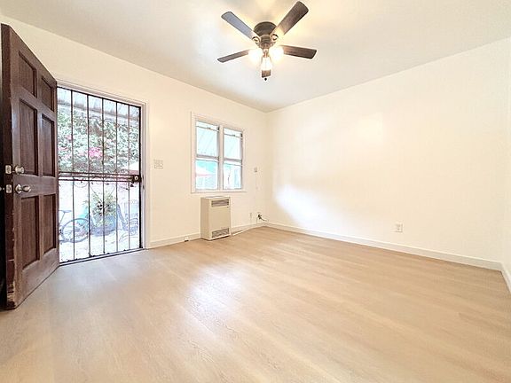 This remodeled 1 bedroom, 1 bathroom unit offers 475 sq ft of comfortable living space with laminate flooring throughout and ample living room space. The kitchen includes granite countertops, a double sink, and excellent storage. The bathroom features tile floors and walls, a modern mirror, and a standing shower. Additional features include washer and dryer hookups, a ceiling fan, and a wall heater. Parking is on-street only. Utilities are not included.