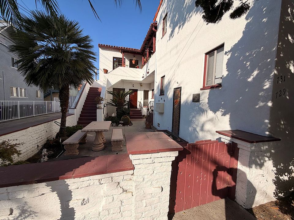 Historical buildingBrand new paintFront courtyard common areaBackyard with patio furnitureFormal dining areaHardwood and linoleum flooringCeiling fan in bedroom
