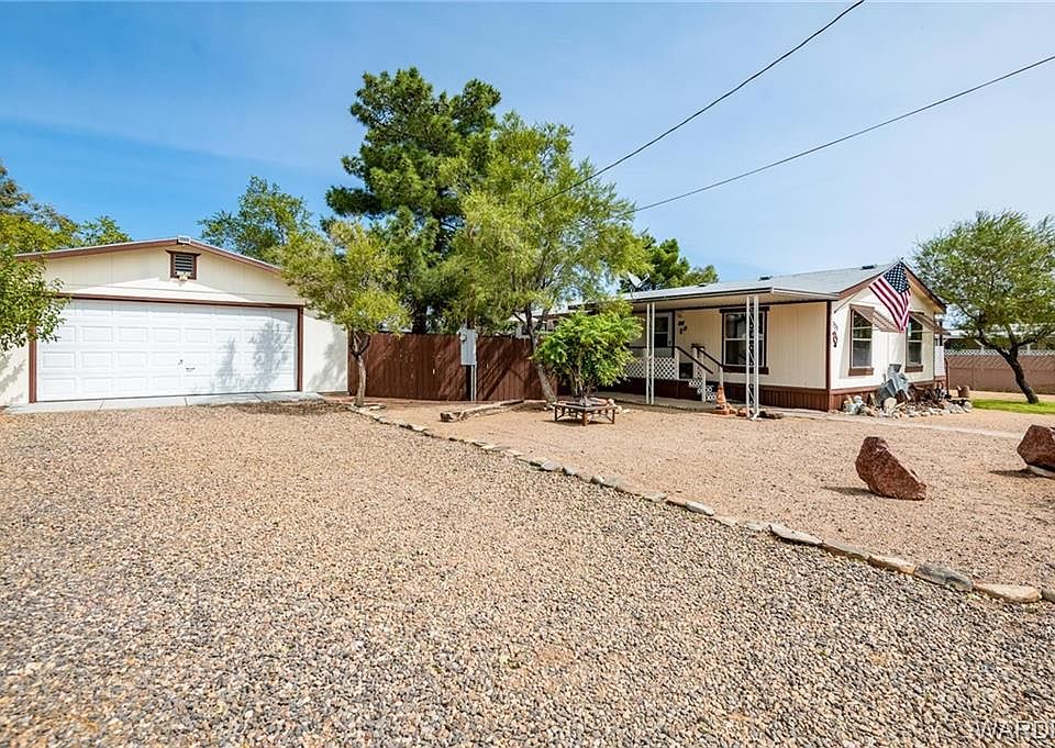 What a lovely, immaculate home! This home sits on four lots, totally fenced, with two bedrooms, two baths, open living room, dining and kitchen which features a brand new stove just installed, plus the refrigerator stays also. Double slider doors off of the dining room to the covered patio, laundry room has plenty of storage. Central heat and air, house was painted outside 2019. There is a fabulous mini oasis area with a 24 X 16 deck with spa on the west side of the home ready for relaxing or enjoying a party! Detached out building with a new roof that is being used as a laundry room (your choice inside or outside building). Large garage that is 24 x 30 with painted floors, electric, shelving and manual garage door. Two additional storage sheds. This property is so well cared for it is a perfect home for anyone and is move in ready! Don't delay call for your appointment today!