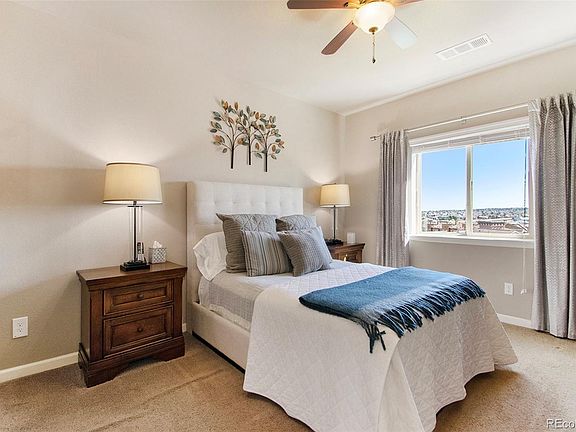 Welcome to your fully furnished condo nestled on the 4th floor! The Pendulum model is a stunning 2-bedroom, 2-bathroom condo that offers breathtaking views that will leave you in awe. Step inside and be greeted by an open floor plan that seamlessly connects the living room, dining area, and kitchen. The living room features a cozy gas fireplace, perfect for chilly evenings or creating a warm ambiance any time of year. The kitchen boasts beautiful cabinetry providing ample storage space, along with a custom pantry for all your organizational needs. Whether you're preparing a quick breakfast or hosting a dinner party, this kitchen is sure to impress. The primary bedroom offers a peaceful retreat with its own ensuite bathroom, while the second bedroom is perfect for guests or can be utilized as a home office or den. Both bathrooms are beautifully designed with modern fixtures. Convenience is key with a secured community garage offering dedicated parking, additional storage space, and elevator. Plus, you'll love the proximity to a plethora of amenities including dining options, retail shops, entertainment venues, parks for outdoor recreation, medical facilities for peace of mind, and access to the 4 rec centers in Highlands Ranch. Don't miss out on the opportunity to make this condo your own and enjoy the luxurious lifestyle it has to offer. Schedule a viewing today and prepare to fall in love with your new home!