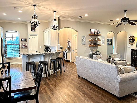 Desirable neighborhood in Haughton school district-This 4 bed, 3 bath home is located on a corner lot in the gated community, Dogwood South #2. It has 3 beds and 2 baths downstairs and one bedroom with a full bath upstairs. Beautiful open living concept with lots of windows and natural light. The back yard has a nice covered patio, swimming pool and gazebo. In addition, there is a bricked shop with additional covered parking for a boat/camper