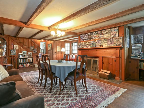 Amazing 3-story 1785 Farmhouse, the subject of 29 pages in Westchester Historian Magazine (1997). 2 rolling, green acres bordered by lovely trees. Period detailing--beamed ceilings in library and paneled dining room, hardwood floors, built-in cupboards, and window seats give the home a solid and comfortable feel. Light and bright, with airy second floor living room, long covered porch, screened porch, sunken patio and two decks. Five bedrooms, den, study, office, eat-in kitchen and breakfast room. 18 closets! Great for entertaining. And it feels like home.