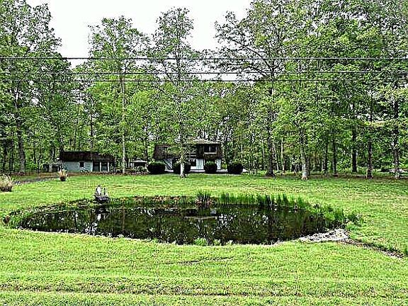 Picturesque pondWooded acresKnotty pine wallsDetached three-car garagePatio gazeboScreened-in back porchStone gas fireplace