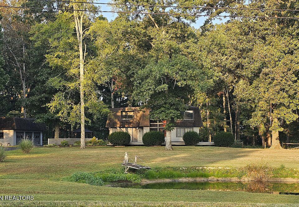 Experience the best of EAST TENNESSEE living in this 3-bed, 2-bath home on 4.5 unrestricted, wooded acres with picturesque pond and ample space for a mini-farm, featuring a two-story living room with exposed beams, stone gas fireplace, knotty pine walls, loft-style primary BR, hot tub and bonus room with skylight. There's a one-car attached garage with workshop area, detached three-car garage, wraparound composite deck, patio gazebo, and screened-in back porch with views of woods and wildlife. Located in White Pine, TN, five minutes from local amenities and 30 minutes from a STATE PARK and two LAKES. The GREAT SMOKEY MOUNTAINS NATIONAL PARK, Gatlinburg, and Pigeon Forge are all within an hour's drive. This versatile property is ideal for those seeking a rural retreat and homestead.