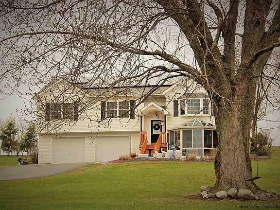 WALLKILL - COUNTRY LIVING AT ITS BEST! Beautiful 2 acre pastoral setting with the backdrop of the Shawangunk Mountains and Blue Chip Farm. If a serene setting with country life is what you are looking for, this home has it all. Built in 2004, spacious home with soaring cathedral ceilings, open floor plan, cozy fireplace, and gorgeous bay window in the living room. Master bedroom has en-suite bath, granite counters, soaker walk-in tub and walk-in closet. Huge family room downstairs with sliding glass doors leading to a stunning year round glass solarium with amazing views. The rear yard offers a 16x12 deck, custom blue stone fire-pit, mature landscaping, and a horseshoe set up perfect for entertaining! Don't miss out on this amazing home which commutable to all major highways and NYC.