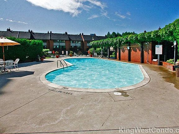 Bright, open lake-view luxury condo. With rare, large garden, BBQ, outdoor pool in prime King West location. All the amenities you can think of in/out pool, jacuzzi, sauna, squash, ping-pong, pool, library, full gym, aerobics class..