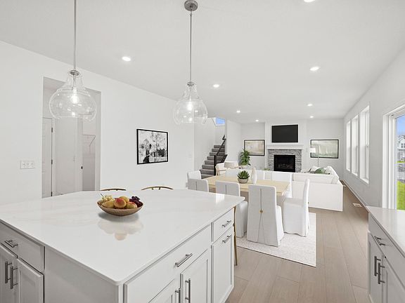 This home is available for a September closing date! The Sinclair floorplan combines style and functionality in a spacious, open-concept design. The gourmet kitchen, complete with a center island, quartz countertops, a tile backsplash, and a walk-in pantry, flows effortlessly into the informal dining area and Great Room, where a gas fireplace adds a cozy touch. Upstairs, four bedrooms and a convenient laundry room provide practical living space, while designer finishes enhance every level. A versatile main-floor study, enclosed with elegant glass French doors, offers flexibility for work or play. The mudroom includes a walk-in closet for added storage. Retreat to the expansive primary suite, featuring a private bath with a soaking tub, separate shower, and a walk-in closet. An unfinished lookout basement provides potential for future expansion. Outside, the home is complete with a fully sodded yard, front landscaping, and an irrigation system for easy maintenance.