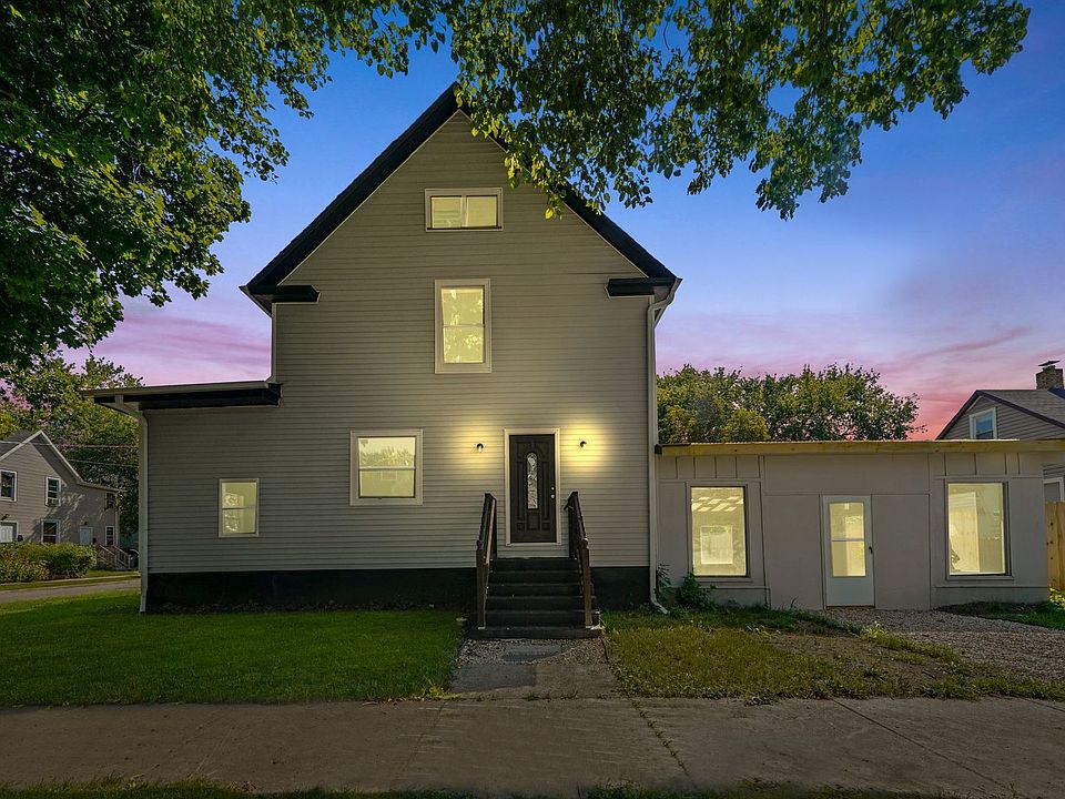 Welcome to this charming traditional home, beautifully remodeled to offer modern comfort while retaining its classic appeal. This inviting residence features four spacious bedrooms and two full baths. The first floor showcases elegant hardwood floors throughout, a formal living room, and a dining room bathed in natural light. The updated kitchen is perfect for both everyday meals. Additionally, you'll find a first-floor bedroom with a walk-in closet and an extra room that can serve as a den or office. Enjoy the versatility of a screened-in porch, ideal for year-round use. The second floor houses the primary bedroom along with two additional bedrooms and another full bath. The expansive full attic offers the potential for extra living space tailored to your needs. The full basement is a blank canvas, ready for your creative finishing touches. A two-car detached garage provides ample parking and storage. All new electrical. A lot of plumbing is newer. Property has passed Waukegan Village inspection. Situated close to schools, parks, and Waukegan Beach, this home is perfectly located for convenience and recreation. Don't miss the opportunity to make this gem your own!
