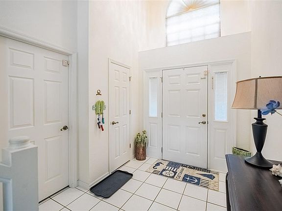 Amazing South Lakeland Waterfront - both in front and back of the home. This 3 br / 2.5 bath home boasts over 2000 square feet of AC living space and was built in 1995. Enjoy watching the sunset from your own private dock overlooking Lake Clark in South Lakeland. The eat-in kitchen is spacious and overlooks the Dining and Family Room that boasts soaring ceilings and also overlooks the screened lanai. The primary bedroom is on the ground floor and the primary bath boasts dual sinks, soaking bathtub, and separate shower, in addition to a large walk-in closet. Upstairs, there are two bedrooms and a shared Jack and Jill bath. Additional features include powder bath that is located downstairs, private dock, inside laundry room, gas fireplace in the family room, two car garage, new AC, and lake water used for irrigation. Many of the furnishings can be negotiable.