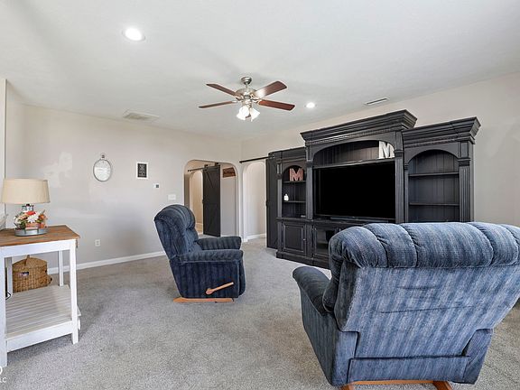 This move-in ready 3-bed, 2-bath ranch sits in a quiet, walkable neighborhood with fast access to I-74. Inside, the open floorplan features a spacious kitchen with warm cabinetry, stainless steel appliances, and a standout farmhouse-style island. Natural light pours through the kitchen window and highlights the durable wood-look flooring throughout. The dining space fits a full table and flows easily into the living area, making it great for hosting or everyday living. The primary suite includes a walk-in closet and private bath, while two additional bedrooms offer space for guests or a home office. The barn-style pantry door and fresh lighting add a stylish touch. Outside, enjoy a fenced backyard and peaceful community setting. Located in the sought-after Jefferson Park neighborhood within North West Hendricks schools, this home delivers both comfort and convenience.