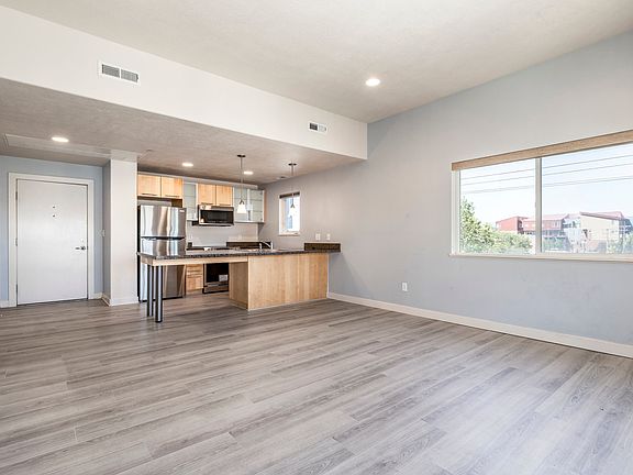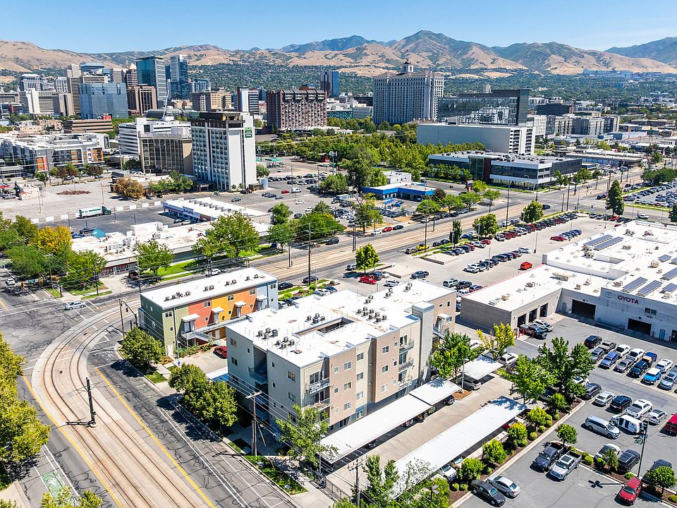 Experience Urban living at its finest! This stylish 2-bedroom, 2-bathroom condo is perfectly situated in downtown Salt Lake. Enjoy a bright and open floor plan with expansive windows, modern finishes, and a private balcony with city views. The spacious kitchen features granite countertops, new stainless steel appliances, and bar seating-ideal for entertaining. The primary suite includes a walk-in closet and en suite bath. Walk to restaurants, shopping, nightlife, the new up-and-coming Granary District, and Trax Stops. You can be downtown, University of Utah, or airport in just minutes. This complex offers secure covered parking as well.
