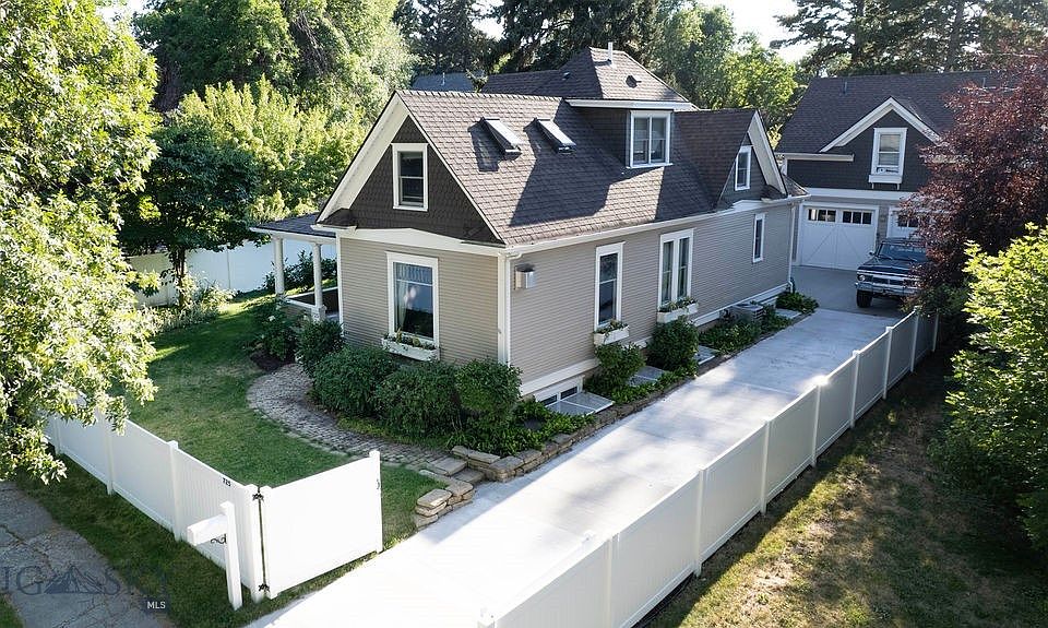 Outside, a detached two-car garage includes a private stairwell to a finished one-bedroom, one-bathroom ADU —ideal as a guest suite or studio. Bold yet timeless, this home stands as a statement of individuality and refined living. Recent upgrades include a whole-home Kinetico water filtration system, permanent exterior lighting, fresh paint, new fence and more — Just minutes to Main Street!