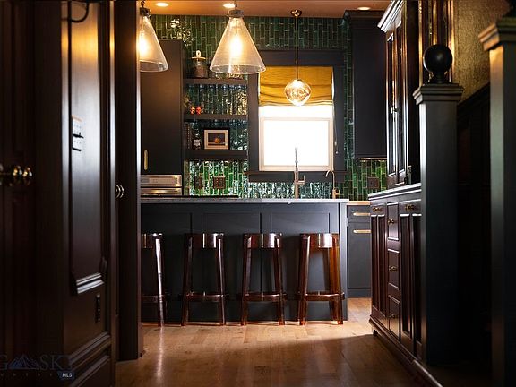 At the heart of the home, the kitchen makes a statement with emerald tile, sleek black cabinetry, custom accents, and top-of-the-line appliances. An informal dining nook with built-in seating and vibrant details opens to the back patio and a spacious, landscaped backyard — ideal for relaxing and entertaining. Upstairs, the dramatic second primary suite pairs bold peacock wallpaper with two walk-in closets and a distinctive en-suite. A skylit reading nook and hidden office concealed behind custom bookshelves add both character and surprise. The lower level combines comfort and function with a spacious family room, a custom tiled accent wall, two bright bedrooms, a full bath, egress windows throughout as well as the laundry with provides ample storage and counter space.