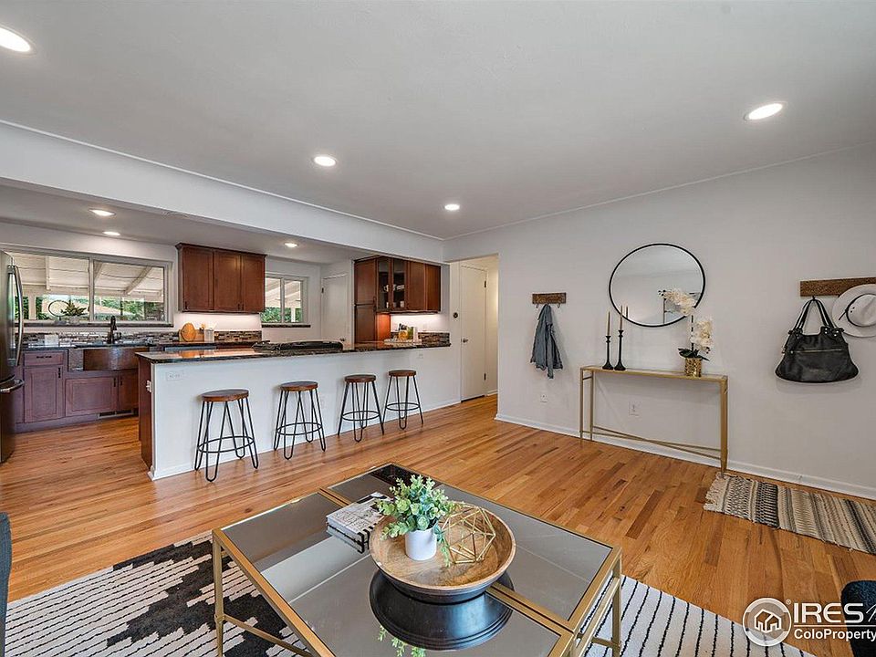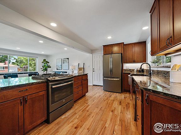 Adorable South Boulder home! Remodeled kitchen has gorgeous granite countertops, hand hammered copper sink, under cabinet lighting, great storage, & stainless steel appliances. Open concept & strategic placement of the gas range creates more time spent with family & friends. Newly refinished wood floors & fresh paint throughout the main level. 3 bdrms on the main, 1 with an updated en-suite bathrm. Remodeled full bathrm on the main level as well with deep soaking tub & upgraded fixtures. Enjoy newer central A/C, upgraded lighting, smart garage door, Ring doorbell, Nest thermostat, & radon mitigation. Finished bsmnt features a large entertaining space w/ fireplace and wet bar, 2 more bdrms, 1 bathrm, & laundry room. One car garage with storage. Enjoy the outdoors on the covered patio, in the backyard, or walk/bike to many trails/parks & popular stores/restaurants nearby. Convenient, quick access to US 36 & Hwy 93. Separate entrance in the back allowing for possible rental income.