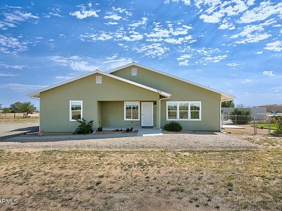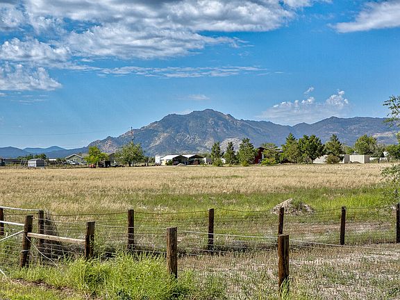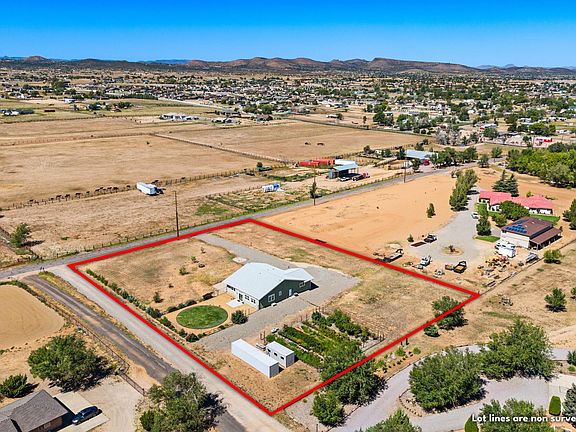 True Country Charm & numerous modern conveniences including City Water! This Garden Farmhouse features Granite Mountain views, farmhouse finishes, a cozy gas fireplace, loads of storage & an expansive garden. An inviting Open Floor Plan highlights a bright, cheerful kitchen that truly shines with a large island, modern storage drawers, two pantries, and all appliances convey. Flexible layout offers a den or formal dining room flowing into an AZ Room w/ a doggy door & a roomy, grassy, fenced in yard. Extras include a spacious laundry room, extended garage and 2 shipping containers that convey.-one w/ windows for a greenhouse or workshop (8x20) & another for generous storage (8x40 has power). Fenced in Garden includes Apple Trees, Peach, Pear, Cherries, Blueberries, Figs & so much more!