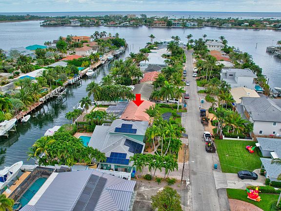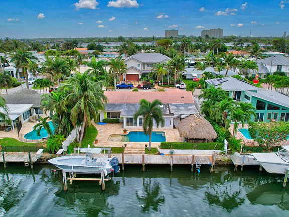 Exquisite Waterfront Home on Deep Water Intracoastal Canal, No Fixed Bridges, Minutes to the Inlet and Ocean, Large 75' of Boat Dock space with 18,000lb Boat Lift, Sparkling Pool, and Beautiful Custom Pool Deck with Large Custon Tiki Bar Area for Wonderful Waterfront Entertaining or Dinner Alfresco! Spacious4 Bedrooms, 2.5 Baths, Split floor plan, Granite Kitchen, Stainless Appliances, Gas Stove, Your Waterfront Oasis Awaits!