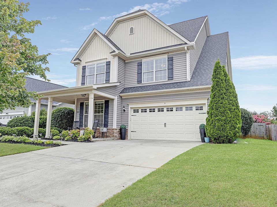 Absolutely stunning 4 bedroom, 2.5 bathroom home with open concept living! Main floor boasts private office, formal dining room with tray ceiling, great room with fireplace that opens to the kitchen with granite countertops, island, tons of cabinet space, and stainless steel appliances including a gas range. Top floor bedrooms including huge primary suite that offers double vanity, walk-in shower & separate soaking tub, walk-in closet and a water closet, plus bonus room on second floor ideal from second office, gym game room or more! Screened porch overlooks landscaped, fenced backyard ideal for entertaining. Don't miss this amazing opportunity!