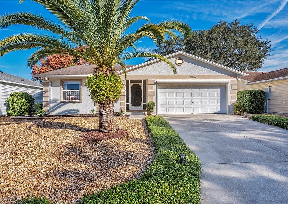 Welcome to Easy Living in Pennbrooke Fairways—Central Florida’s premier 55+ gated golf community! This beautifully maintained and fully furnished move-in ready 2-bedroom, 2-bath home offers the perfect blend of comfort, style, and convenience. Step inside to a bright, open living area with sliding glass doors leading to an extra-large lanai, perfect for relaxing or entertaining. The front porch is also screened, allowing the gentle Florida breeze to flow throughout the home. The kitchen shines with modern updates, including a new dishwasher (2023), granite countertops (2023), updated kitchen flooring (2022), and newer stainless appliances—refrigerator (2020), stove/oven (2020), and microwave (2021). Enjoy new bedroom flooring (2025), a completely refreshed bathroom (2025), and all-new window blinds (2025) throughout. Other upgrades include a new water softener (2023), roof (2017), refinished lanai ceiling (2025), and new lanai cushions (2023). The oversized garage offers plenty of storage—ideal for golf carts or hobby space. With lawn maintenance included in the HOA, you’ll have more time to enjoy the active Pennbrooke lifestyle. Community amenities include 27 holes of championship golf, two heated pools, hot tubs, fitness center, tennis and pickleball courts, a restaurant (“The Grille”), and even an on-site hair salon. Social clubs and friendly neighbors make Pennbrooke Fairways a place where residents don’t just wave—they stop to chat! Located just minutes from The Villages and Brownwood Town Center, you’ll enjoy shopping, dining, and entertainment close to home while living in a peaceful, gated oasis. Move-in ready and waiting for you—come experience why Pennbrooke Fairways isn’t just a place to live, it’s a place to love!