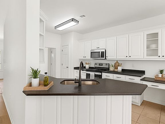 Stone patio with firepitKids playhouseOversized laundryLarge kitchenBrand new lvp flooringGranite countertopsCovered deck