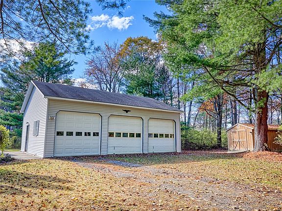 Set back from the road on 15.6 serene acres, this 2 bedroom 2 full bath home is all about privacy. The park-like setting includes a walking trail surrounded by mature woods including a shagbark hickory grove and a large yard for games and gardening. While the wooded paradise provides plenty for hunters to explore, the tinkerers will appreciate the generous 3-bay garage with high ceilings, storage space, and a workshop. The home has 2 decks, one in the front and the other in the back, to enjoy outdoor living. Not only does the living room feature a bay window, every window in every room in this house has a great view. The property has 2 additional sheds. Recent infrastructure updates include a new water heater and a pressure tank in 2023, and a new septic in 2024. This is such a beautiful spot to enjoy life for such an affordable price, leaving room in your budget to customize the home to your liking. Come see it!