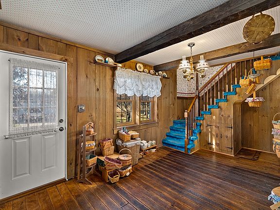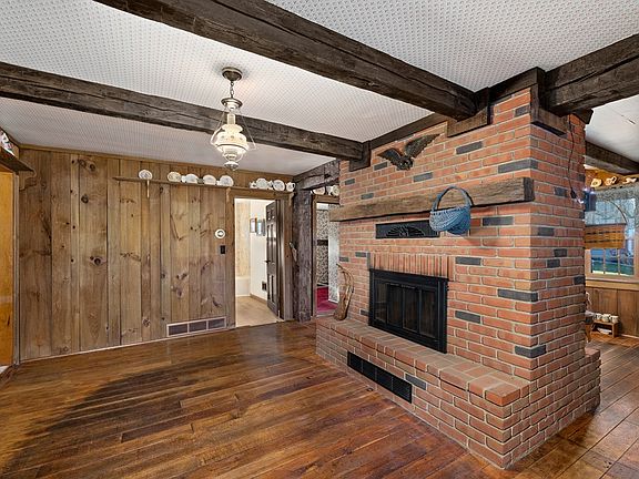 Character Plus Charm! Situated on 1 acre, this country home will make you feel like you've stepped back in time with it's hand-hewn beams and two-sided fireplace in the living/dining room. The expansive Great Room with wood ceilings and fully applianced kitchen were added in 1985 allowing plenty of room for entertaining. One bedroom, 2 full baths, and laundry are located on the main floor with 2 additional bedrooms upstairs. Central air. Enjoy the private backyard view from the large deck. 2 & 1/2 car attached garage. Property is being sold "AS IS".