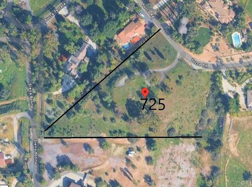 Panoramic 360° view rebuild opportunity in Fallbrook! Welcome to 725 Yucca Rd, Fallbrook, CA 92028 — a rare 3.51-acre homesite at approximately 900’ elevation with sweeping views in every direction and a beautiful mix of mature pine, oak, and olive trees. The prior residence was lost in a fire, creating an outstanding chance to rebuild or design a brand-new custom estate. Key improvements are already in place including a water meter on-site, underground electricity, and a new 1,500-gallon septic tank installed to support a larger future home (leach lines may require extension depending on final plans). Existing driveway access remains (repair needed). Located among high-end custom homes, this property stands out as a larger parcel than many surrounding properties, offering added privacy, flexibility, and estate-style potential. Buyer to verify all building requirements and property details.