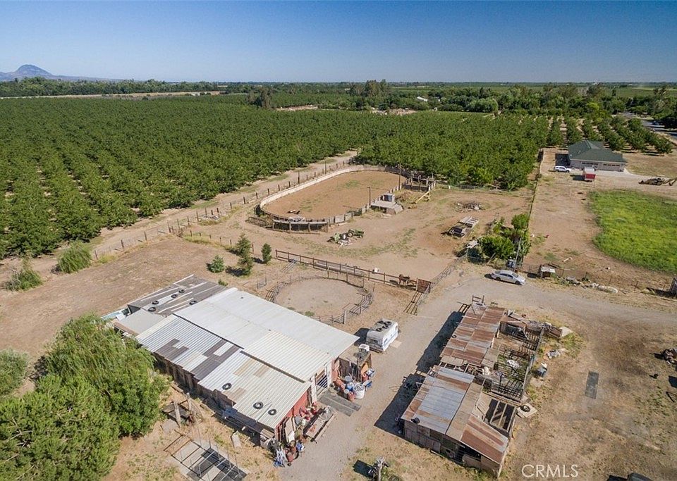 Unique 3+ acre property! One acre of chandler walnuts in their 5th leaf on sprinkler irrigation. There are 6 horse stalls, a roping arena 80-100 ft wide and 120 ft long. The land is fenced and has electric panels for housing and the ranch. There is a pad for a home. Small portion of land was sold to neighbor, a lot line adjustment has not been completed but property is staked.