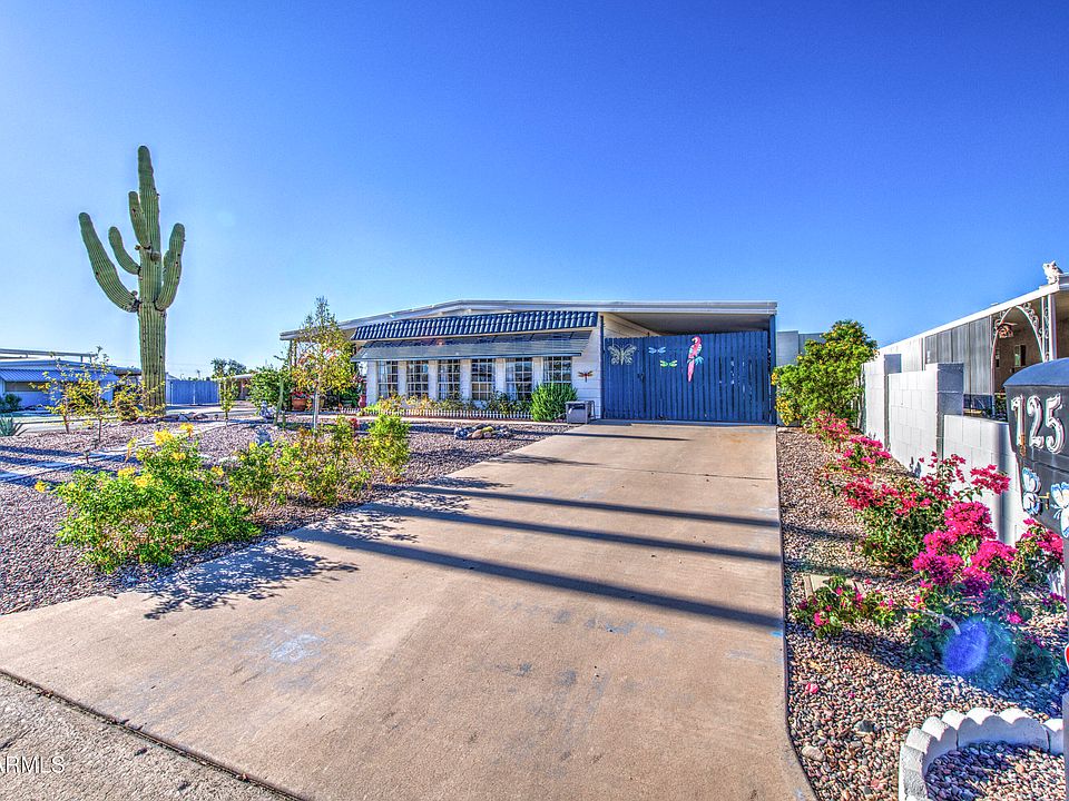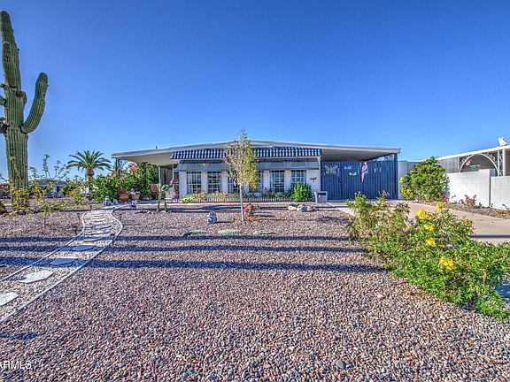 Lots of room in this recently update home in active adult community. Kitchen with Quartz countertops, new sink, new refrigerator, new dishwasher and beautiful wood cabinets. Lots of storage here. New flooring except bedrooms and baths. Newer AC and pec plumbing except copper in front. Gas range & oven, water heater, dryer and heat. All rooms repainted except on bath. New vanities in baths. Screened room to enjoy those beautiful sunsets. Roof recently recoated. Large family room/hobby area or den. Lots of activities including swimming pool & spa, billiards room, clubhouse, drama club, bingo, horseshoes, pickleball and more. Close to Banner Baywood hospital, lots of restaurants and golf courses and Superstition Springs Mall.