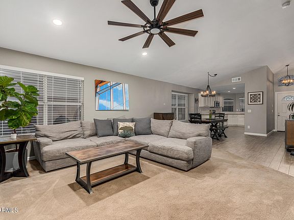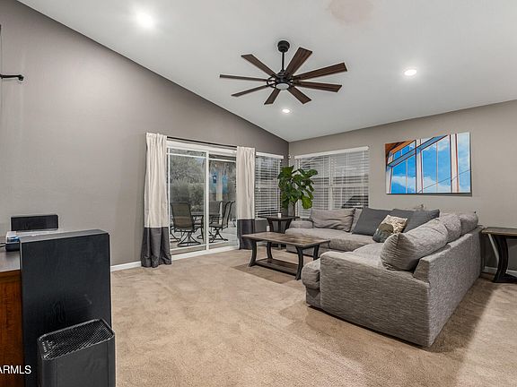 This is it! An open concept design with vaulted ceilings, wood tile planks in all the right places, plush carpet, and neutral paint—this home is meticulously cared for! Additional features include stainless steel appliances, ample lighting, granite counters, a fully renovated master suite with a walk-in closet, separate shower/tub, and toilet room. You'll find spacious secondary bedrooms, an interior laundry room, a covered patio, a grassy front and backyard with ample privacy, hardwired landscape lighting, and pavers. Nestled in the highly desirable Superstition Springs community, enjoy access to parks, a covered playground, volleyball court, and a great golf course!