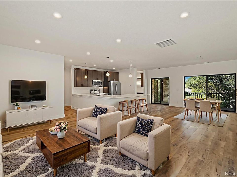 Welcome to this spacious and charming condo in Central Denver’s desirable Hampden South neighborhood. Lock and Leave lifestyle offering over 2,000 sq ft of main floor living, this rare 3-bedroom, 2-bath home features an open layout flooded with light. There are also 3 garage spaces! Residents enjoy scenic greenbelts, well-maintained common areas, and a quiet, welcoming atmosphere. Minutes away from parks, schools, and all of the popular amenities this Central location is hard to beat. Beautifully remodeled kitchen and bathrooms - the flow of this unit is impeccable. Butlers pantry / workspace area, large bedrooms beautifully finished floors and a separate living room area with fireplace and wet bar. Enjoy shady West facing private outdoor spaces, generous storage, in-unit laundry, and a 2-car Attached garage, 1-car shared garage and 5 off street reserved parking spaces for added convenience. Whether you're hosting, working remotely, or relaxing in comfort, this home delivers the perfect mix of space, functionality, and location. Competitively priced and full of potential, it’s a great opportunity for buyers seeking low maintenance, comfort, community, and long-term investment value in one of Denver’s most established neighborhoods. EV Charger wired in attached 2 car garage.