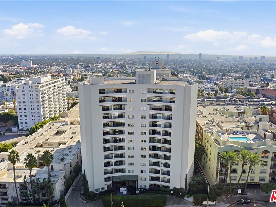 Perched on the fifth floor of the sought-after Franklin Towers at 7250 Franklin Ave #517, this renovated corner residence offers 2 bedrooms and 2 bathrooms with sweeping views of the Los Angeles skyline. The generous wraparound terrace showcases dramatic city vistas and spectacular sunset displays. Meticulously upgraded throughout, this contemporary home features concrete and hardwood floors, designer wallpaper accents, and a custom mirrored wall that enhances the sophisticated aesthetic. The designer kitchen is outfitted with stainless steel appliances, contemporary cabinets, and black granite countertops that blend sophistication with practicality. A newly updated air-conditioning system ensures year-round comfort, while the luxurious cedar-lined walk-in closet and custom built-in closets provide abundant storage solutions. Convenience is enhanced with in-unit laundry hookups and two designated parking spots plus additional storage space. Franklin Towers delivers exceptional full-service amenities including round-the-clock concierge and security services, valet parking, a temperature-controlled pool, spa facilities, steam room, dry sauna, dedicated yoga studio, and a glass-walled rooftop fitness center offering magnificent city scape panoramas. The rooftop entertaining space and clubhouse featuring a full kitchen and comfortable lounge area create the perfect setting for gatherings. Perfectly positioned near Runyon Canyon, Hollywood Boulevard, and the Sunset Strip, this outstanding residence provides unparalleled urban luxury living.