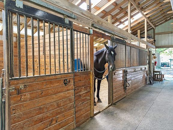 Oversized storage shedsClimate-controlled tack roomLaundry areaFenced pasturesDoubles as a workshopSprawling ranch-style homePrimary bath