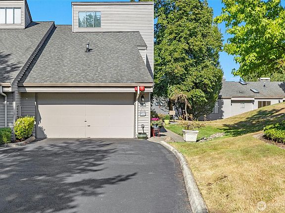 Light filled and elegant 2-bedroom plus main-level office, 2.25-bath end-unit townhome-style condo in sought-after Marymoor Trails. Floor-to-ceiling windows fill the home with natural light & offer beautiful mountain views. The living room features a gas fireplace with adjustable flame & lighting settings. Updated kitchen with new quartz countertops opens to a spacious dining area. Step out to a private patio, perfect for relaxing or entertaining. Expansive office with a large bookshelf & framed by pocket French doors. Loft-style primary suite with vaulted ceilings, updated en-suite bath, & Cascade views. Large 2-car garage with high ceilings & additional loft storage. Top-rated Lake Washington Schools. Minutes to Microsoft, parks, and RTC.