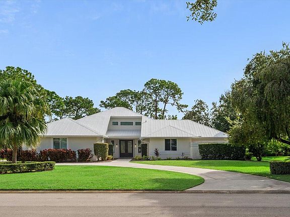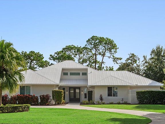 GORGEOUS MOVE-IN READY HOME WITH GOLF VIEWS! Nestled on a beautifully landscaped 1/2-acre lot overlooking the 2nd hole of the prestigious Legacy Golf Course, this meticulously updated home offers luxury, comfort, and peace of mind. Step inside to discover a bright, modern interior featuring 24x24 porcelain tile flooring throughout, a 2018 metal roof, PGT WinGuard impact windows, and a hurricane-rated garage door--every detail designed with quality and durability in mind. The chef's kitchen is a true showstopper, featuring Bosch appliances, granite countertops, custom cabinetry, with an adjacent dining area and family room, perfect for entertaining. The living room offers a more formal gathering space including bar area with wine cooler all with breathtaking views of the golf course. Three en-suite bedrooms with walk-in closets all have bathrooms that have been tastefully renovated with seamless glass showers, custom vanities, and premium finishes. The oversized laundry/hobby room provides exceptional functionality with an abundance of granite-topped storage. Additional highlights include New A/C units (2021 & 2022), Updated electrical panel, Whole-house water filtration system, 3-car garage & expansive circular driveway. Enjoy breathtaking golf course views every day from your private covered screened lanai. Your HOA fees cover access to the PGA Village Island club where you have a resort style pool, fitness center, pickleball, tennis, billiards and a host of activities and events for everyone. This is more than a home, it is a lifestyle.