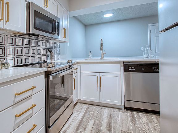 This home features a fully equipped kitchen with stainless steel appliances, updated cabinets, and modern backsplash, a washer and dryer, and also includes an under-mount sink. You will also enjoy 2'' blinds, 6'' baseboards, and wood-style flooring throughout with carpet in the bedroom and closet. Furthermore, you will also be able to enjoy a private patio/balcony.