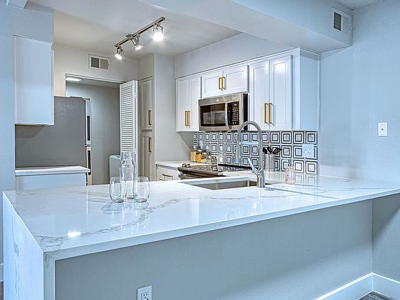 - Exterior features: 6 inch baseboards, Black Appliances, Ceramic tile backsplash, Custom Closets, Quartz countertops, Spruce Lifestyle Services, Stainless steel appliances, TV Lounge, USB Port, White Quartz/Undermount Sink, Wood Style Flooring Throughout