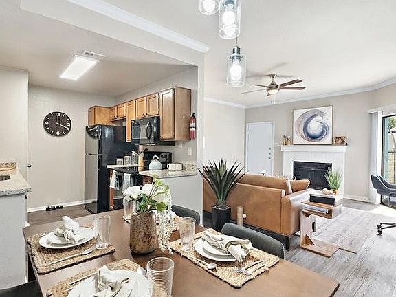 - Exterior features: Black Pendnt Dining Light, Corner Unit, Granite Countertops Kitchen Only, High-Gloss Wood Cabinets, Pendant Dining Area Lightning, Stainless Steel Appliance, Touchless Kitchen Faucet, Townhome Style Apartment, White Cabinets