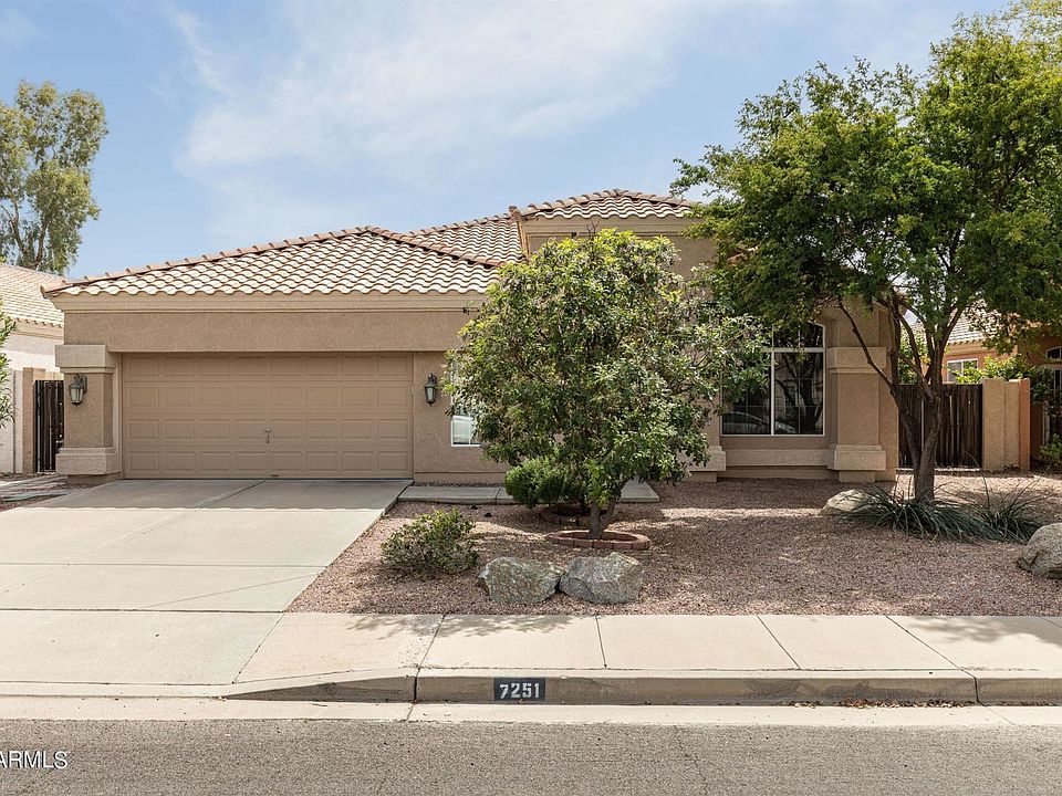 Stay cool this summer with a private pool and new HVAC system! Spacious three-bedroom, two-bathroom home features vaulted ceilings and more than 2,000 square feet of living space. The interior was updated as recently as last year including new laminate flooring, baseboards, and moldings throughout. The bathrooms have been updated with decorative floor tiles, black matte fixtures, and newly tiled showers. An open kitchen features stainless steel appliances and new quartz countertops. There are too many upgrades to list - come check them out for yourself! Seller holds and active Arizona real estate license and is representing himself in this transaction.