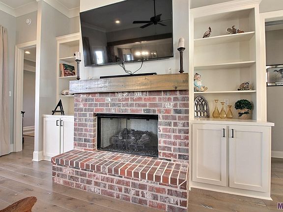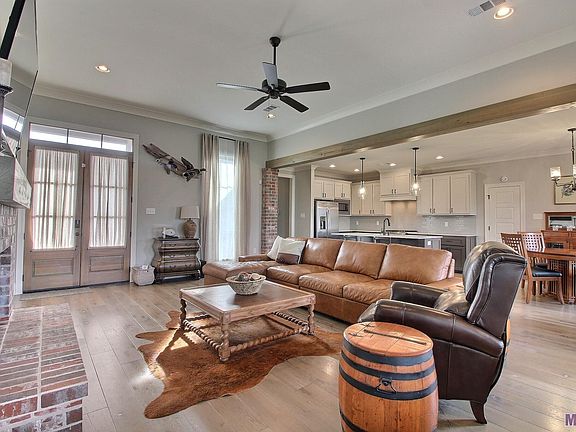 100% Conventional Financing Available, NO PMI, No income limits! Welcome to luxury living in Plainview Ridge! This stunning custom-built home, nestled in the coveted subdivision, boasts 4 bedrooms, 3 full baths & is only 2 years old & BETTER THAN NEW! The top-rated Live Oak schools, and the property's location in flood zone X & Never Flooded. Step inside to discover a meticulously designed interior featuring a triple split floor plan. The open living area, adorned with a beautiful wood beam & wood flooring, seamlessly connects the dining & living spaces, offering a perfect flow for entertaining. The kitchen is a chef's dream, showcasing a large island, quartz countertops, custom tiled backsplash, and stainless steel appliances, including a gas range with a griddle. The living room, with its 11-foot ceilings, gas log fireplace, raised brick hearth and built-in bookshelves, exudes warmth & elegance. The master bedroom is a retreat with a tre ceiling, wood flooring, and an ensuite bath that boasts a custom-built, porcelain-tiled shower, frameless glass shower door, separate jetted tub, toilet closet and dual vanities with Quartz countertops. The walk-in master closet features built-in shelving. Bedrooms 2 and 3 are adjacent to a full hall bathroom. The 4th bedroom, with wood flooring and a ceiling fan, is adjacent to the 3rd full bathroom near the garage. Laundry room & custom mud bench by the garage. Fully enclosed two-car garage, an additional storage room with a roll-up door & ample driveway parking. The extended rear covered porch provides a perfect spot for outdoor relaxation. A full wood privacy fence with double gates on one side and a single gate on the back and other side ensures your privacy. Enjoy the professionally landscaped yard & surroundings in a neighborhood featuring curb & gutter streets, sidewalks & a pond for fishing. Brick home with some stucco & hardi board exterior, 2 gas lanterns, gas line on the back porch. Hurry, schedule a showing today!