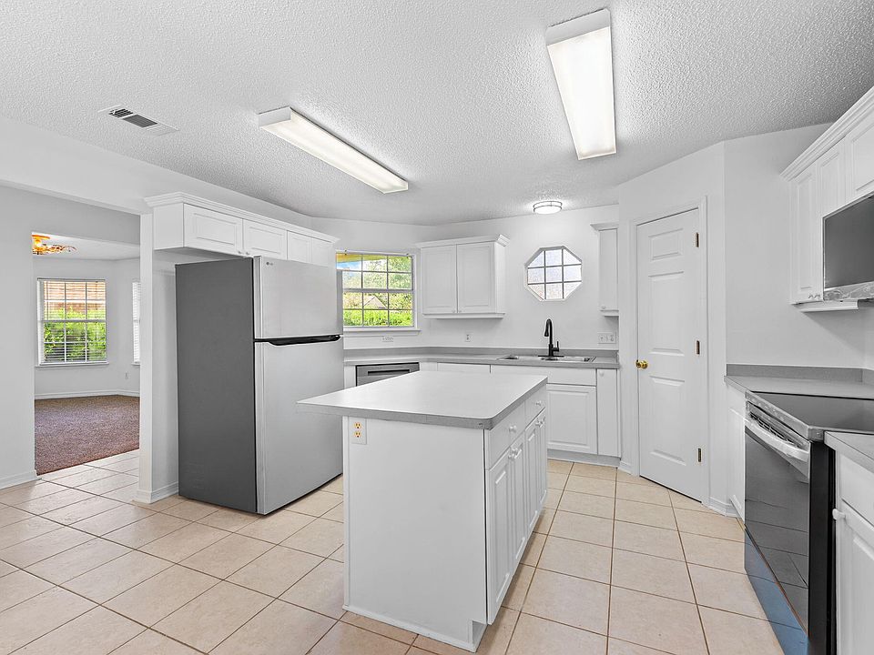 NO HOA! NEW Appliances, Refinished Flooring, New Carpet in Bedrooms; NEWLY Painted throughout home and on a Large Cul-de-sac lot with Privacy and Charm; Tucked away on a generous cul-de-sac lot, this inviting home offers both privacy and practicality with privacy fencing on the sides, chain-link along the back, and a beautiful oak tree enhancing the backyard's natural appeal; great home in the heart of Navarre, minutes from West Navarre Primary School! Inside, the thoughtfully designed split floor plan includes a versatile second formal living or dining room at the front of the home, perfect for entertaining or customizing to your lifestyle. The bright and open kitchen is a chef's dream, featuring a center island, plenty of cabinet space, and room for a large table in the sunny breakfast area with resurfaced cabinets; Welcome to this sunny and bright home, full of natural light and charm! As you enter, you'll be greeted by a spacious formal dining room perfect for family gatherings and entertaining. The kitchen seamlessly opens to the living area, creating a warm and inviting space that flows beautifully. White cabinets create lots of open light with a fresh look; Living area has new tiled entry to the Sliding Glass Doors; Enjoy easy access to the large, fenced backyard through sliding glass doors in the living room to an open patio, ideal for indoor-outdoor living. This home features a desirable split floor plan, offering a private master suite tucked away from the additional bedrooms. Master Bath has tiled shower/bath and double vanities for convenience! The family-friendly layout includes a cozy family room and a great floor plan for families to enjoy! Located in a quiet cul-de-sac, you'll enjoy both privacy and minimal traffic. The garage boasts stylish epoxy flooring, adding a clean and polished touch. Don't miss this bright and welcoming home that checks all the boxes for comfort, functionality, and style!