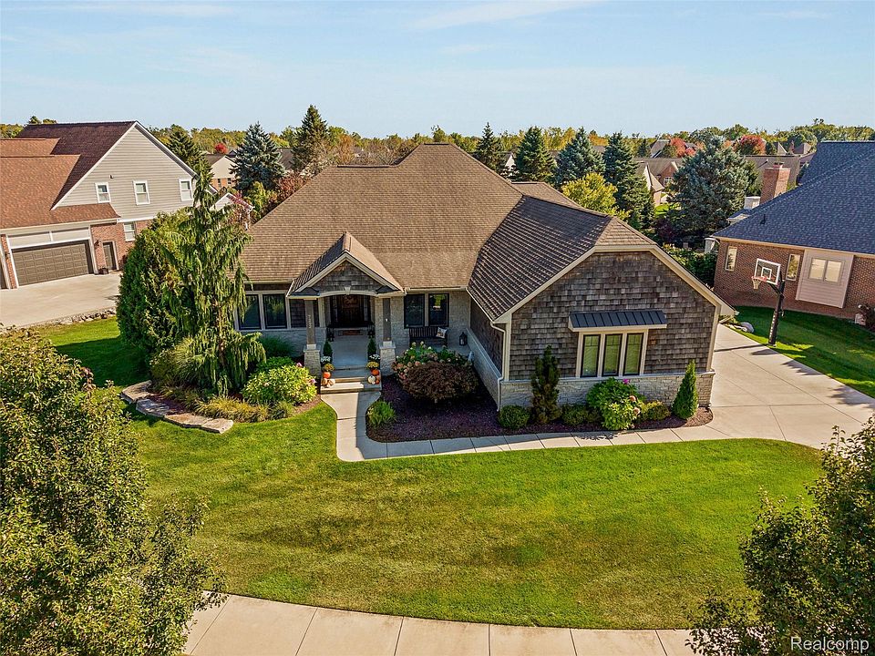OPEN SATURDAY, OCT 4TH (1-3PM). One-of-a-kind custom ranch in the prestigious Oakhurst Golf & Country Club gated community. This exceptional split-ranch offers 4 bedrooms, 3.5 baths, a 3-car garage, and a professionally finished daylight basement—all in a private setting. High-end finishes include white oak hardwood floors, solid wood doors, LaFata cabinetry, California closets, and Andersen windows. The open floor plan seamlessly connects the great room—featuring a dramatic stone fireplace and floor-to-ceiling windows—to the gourmet kitchen and vaulted dining area with beamed ceiling. The chef’s kitchen showcases a large island, granite countertops, Sub-Zero refrigerator, Wolf gas range, wine refrigerator, copper hood, walk-in pantry, tiled backsplash, and designer lighting. The split-bedroom layout ensures privacy, with a serene primary suite offering a tray ceiling, spa-like bath with dual vanities, euro shower, freestanding tub, and custom walk-in closet. Two additional bedrooms and a full bath are tucked on the opposite side of the home. Additional highlights include a library with French doors and built-ins, mudroom with custom lockers, and first-floor laundry. A wrought iron staircase leads to the daylight lower level, complete with bar, family room, recreation area, full bath, bedroom, and “man cave.” Outdoor living is enhanced with a 3-season room, paver patio, hot tub, and new privacy landscaping—perfect for backyard entertaining. Recent Updates: EV charging station (2025), kitchen remodel with appliances, lighting, hardware, faucets, copper hood & custom pantry (2024), powder room & dual bath quartz counters, faucets & lighting (2024), expanded primary closet with California Closet organizers (2024), backyard privacy trees (2023), 4-person hot tub (2021), finished basement with bar, bedroom & full bath (2021), paver patio (2020), dual bath shower remodel (2020). Oakhurst membership available for golf, tennis/pickleball, pool & fitness center. BATVAI