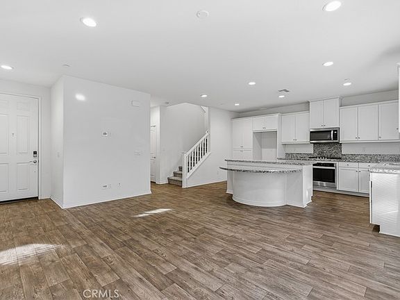 Located in the desirable Encore at Providence gated community in North Fontana, this beautifully maintained home offers 3 bedrooms, 2.5 baths, and 1,642 sq ft of comfortable living space. The spacious living room flows seamlessly into the kitchen, where a center island, stainless steel appliances, granite countertops, and a generous breakfast nook create an open, connected space ideal for everyday living and family gatherings. Bright and inviting with large windows throughout, the home also includes recessed lighting, an individual upstairs laundry room, and a generous primary suite with a walk-in closet. The second floor offers a versatile loft area that can serve as an additional living space or a work-from-home office. Additional highlights include a tankless water heater, a leased solar system for energy efficiency, and a private backyard with a perfect for relaxing or entertaining. This gated community features two neighborhood parks and play ground provides convenient access to the Sierra Lakes Shopping Corridor, Costco, Victoria Gardens, Ontario Mills, golf courses, and schools.