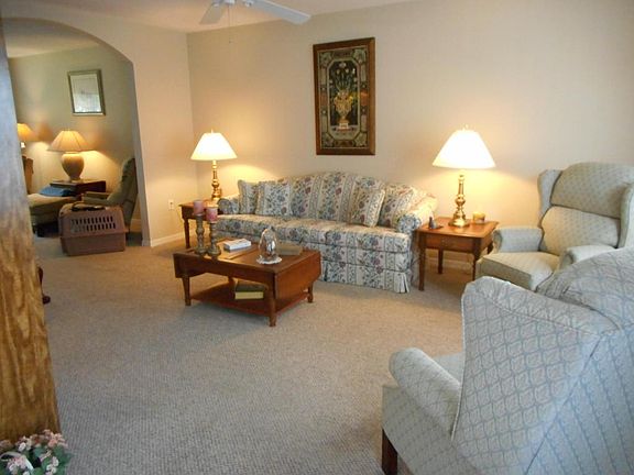 This is a Coventry Model. Just the right size for those retirees looking for a home in very good condition.New roof and brick paver court yard.2 bedrooms plus a den with built-ins. Newer appliances. Very clean, floor in garage painted with epoxy paint. Maintained lot, low water bill. Some furniture available for purchase.
