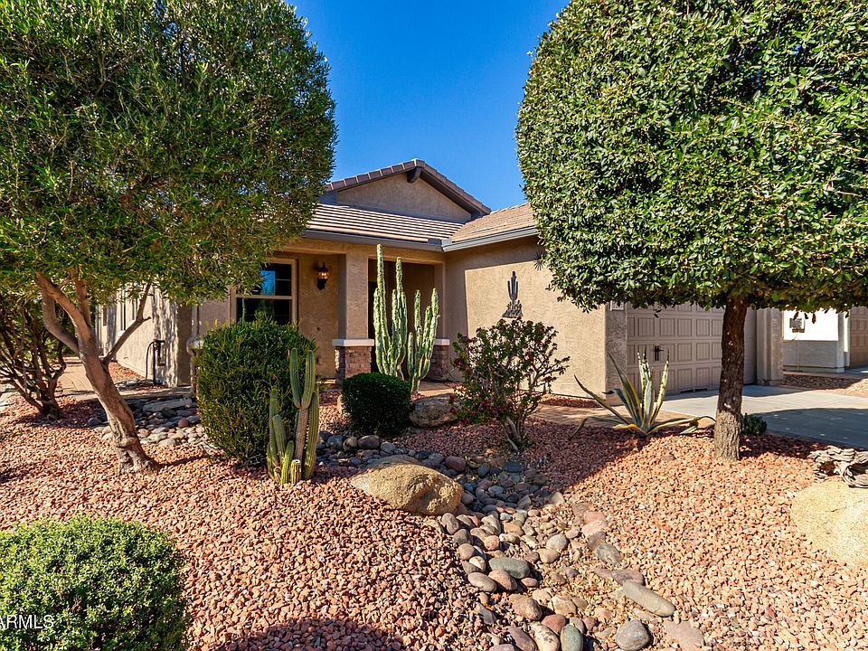 DON'T PUT HAPPINESS ON HOLD ANY LONGER!! This charming Inspiration home perfectly blends comfort, style & functionality surrounded by lush, mature landscape. The delightful outdoor living space w/ Pergola, extended paver patio, seating around the firepit, ideal for peaceful time or entertaining friends. Step inside this impeccable home where the OPEN floor plan combines Living-Dining-Kitchen (granite counters, SS appliances, tile backsplash, gas range & dbl pull-out shelves) for comfort, convenience & organization! The Den adds flexibility w/ built-in desk/Murphy bed, making it ideal for office, guest room or creative space. The combination of beautiful outdoor living areas & energy efficiency, this mostly furnished home is truly move-in ready! TOF Bond is paid! 8 panels of Owned Solar!! Sun City Anthem at Merrill Ranch offers a 48,000 SF recreation center w/ craft rooms for quilting, pottery, glass works, jewelry & crafts, spacious ballroom w/ stage for dancing, theatrical productions, concerts & more. PLUS full gym, work out rooms, indoor lap pool & spa, walking track, cafe area, card rooms, poker tables, pool table, ping pong table, business center, class room for interesting seminars! Troon Poston Butte Golf Course is one of the nicest in the area. Sun City offers Pickleball, Tennis, Bocce Ball, Horseshoes, Shuffleboard, clubs for all activities.......LIVE WHERE THE SURROUNDINGS DELIGHT, INSPIRE & CHALLENGE YOU!