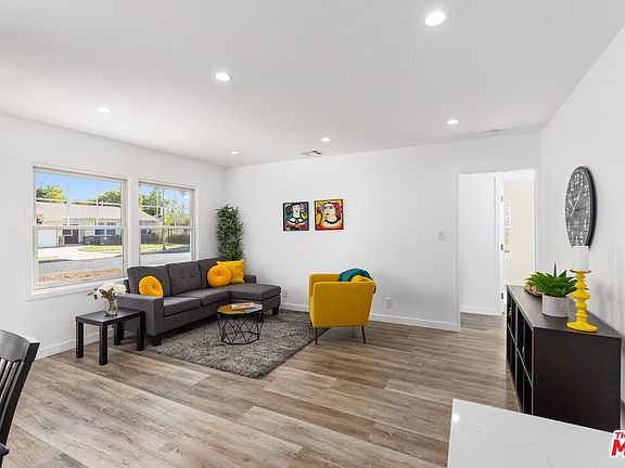 This beautifully renovated 2 bed/2 bath home w/ finished 1 car garage (could be 3rd bedroom or office) located on famed Yolanda Ave in Reseda, known for the Yolanda Lights Holiday Light Display. The property features a sprawling front yard w/ relaxing porch that leads you to a spacious living room w/ open concept kitchen w/ new shaker cabinets, quartz countertops, subway tile, ample kitchen storage, & stainless steel appliances. The formal dining area is ideal for entertaining. All new recessed lighting/fixtures, newer windows, & flooring throughout. The large bedrooms have an abundance of natural light & large closets. Bathrooms feature designer vanities, new toilets, chic designer tile, & new fixtures. The huge oversized private backyard w/ fenced dog kennel & fire pit has the potential to add square footage or a pool w/ plenty of room for BBQ's & family fun. Additional features: newer roof, newer plumbing, electrical upgrades, new central HVAC. Close to all and move in ready!