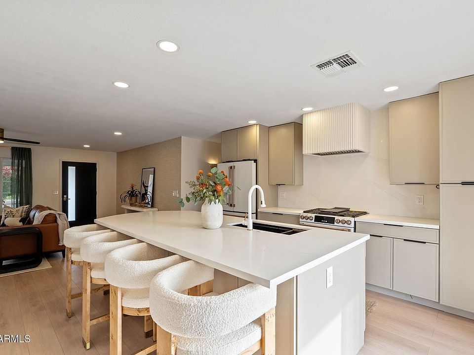 This beautifully remodeled 4-bedroom, 3-bath home in South Scottsdale blends Southwest modern style with warm inviting design. Featuring exterior cedar siding with matching cedar gates and front porch posts. Great curb appeal on a large corner lot with two driveways. Inside boasts an open floor plan with luxury vinyl wide plank flooring throughout. A stunning kitchen with Café appliances, quartz island and backsplash. Custom cabinets and custom fluted hood range and island detail. All three bathrooms are brand new with sleek modern finishes and designer tile. Step outside the bifold slider to the in ground hot tub (spool) with a heated waterfall grotto and jets. The spacious backyard is perfect for entertaining or unwinding with new turf and a pergola dining area. All new electrical a bonus room, extended owner's suite closet and thoughtful updates, this home offers style, comfort, and a great location, just minutes from Old Town and short 10 min commute to Tempe. Easy access to the 101 and 202.