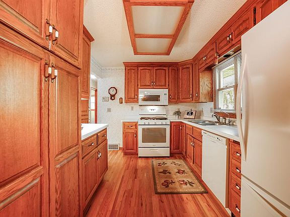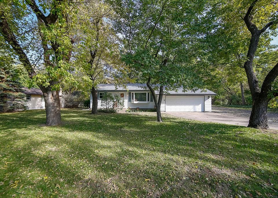 MUST SEE Wonderful one-story home nestled on close to an acre in the heart of Fridley! Light-bright front living room with large bay window & new carpeting. Nice kitchen featuring new stove & microwave. Beautiful hardwood floors in kitchen/dining, hall & bedrooms. Main floor laundry! Spacious main level family room with new carpet, vaulted ceiling, walkout & brick wood fireplace. Partially finished lower level=potential. AWESOME .8 acre lot, variety of mature trees, storage shed & much more!