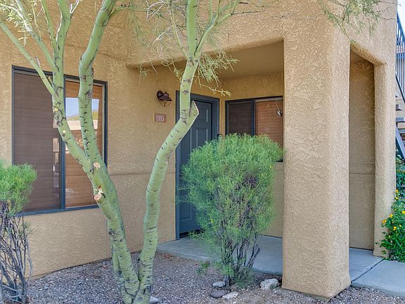 Gorgeous ground floor condo, former model-unit. In desirable school district 16 Stainless steel appliances in the kitchen with granite countertops. 18'' tile throughout, upgraded engineered wood flooring in bedrooms ,recessed lighting, ceiling fans, wooden blinds and Hunter Douglas black-out honeycomb window cover in Master Suite. A/C unit replaced 3 years ago. Bathroom tile, tub and toilets upgraded. Convenient location to Sabino Canyon and many Hiking and Biking Trails. In home washer and dryer. Gated Community with pool, spa, barbeque and exercise facilities. Seller willing to sell furniture separately.